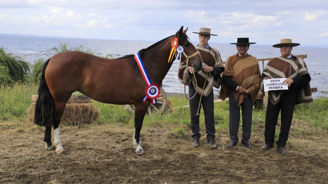 Por su parte Campeona Yegua Mayores y Gran Campeona Hembra, resultó el producto Río Claro Elegancia (Santa Isabel Talento y Río claro Cuculí), nacida el 09.10.2012, Inscripción N°246023, sus medidas son, Alzada:1.40 metros, Cincha:1.80 metros y Caña: 18 centímetros. Criador y Expositor: Ricardo De la Fuente Rivero.